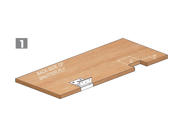 Mark & Make a slot 47x28 for 45mm Hinge, 77x28 for 75mm Hinge, 102x28 for 100 mm Hinge & Fix the Hinge in slot on Back side of Shutter ply.